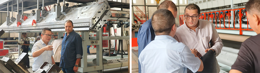 埃及客戶蒞臨達力工廠,驗收土工膜單/雙面噴糙生產線圓滿完成!