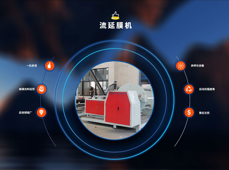 單層流延膜生產(chǎn)線采用擠出流延工藝,以LLDPE、LDPE、CPE、TPE,EVA等顆粒料為原料...