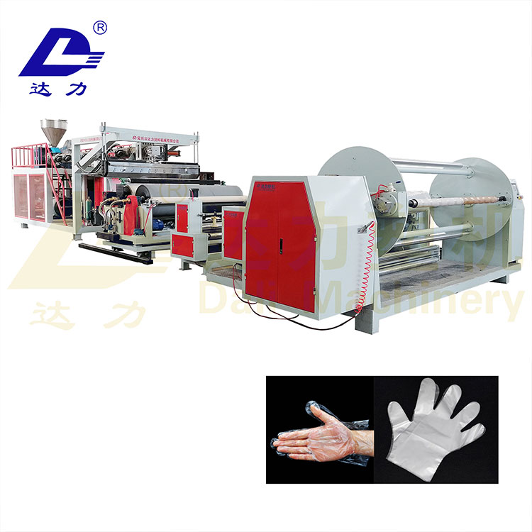 一次性手套膜生產(chǎn)線采用擠出流延工藝,以LLDPE、LDPE、CPE、TPE,EVA等顆粒料為原...